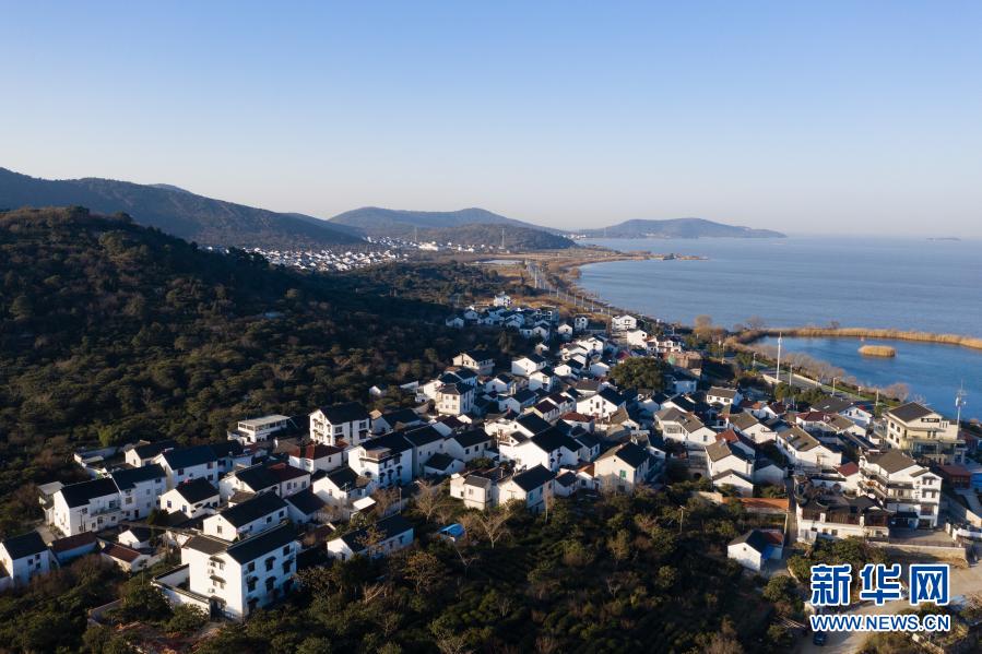 1月13日拍攝的蘇州吳中區(qū)金庭鎮(zhèn)西山島景色(無(wú)人機(jī)照片)。
