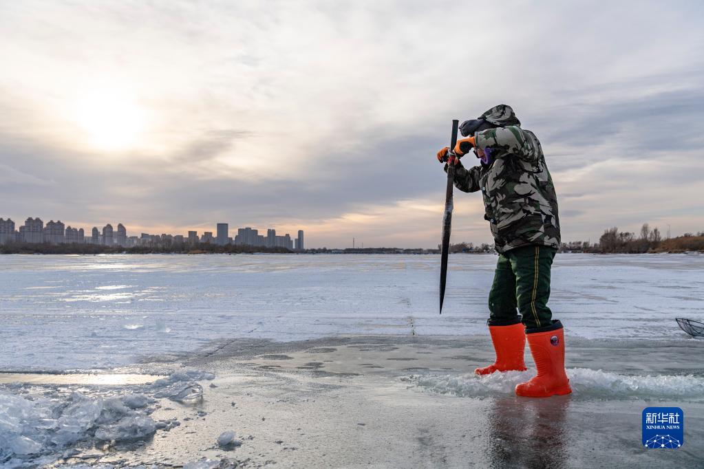 目前,“冰城”哈爾濱市已進入“采冰季”。工人從封凍的松花江采冰,并將冰塊運往哈爾濱市的重要景點等地,用于冰雪景觀的搭建制作。