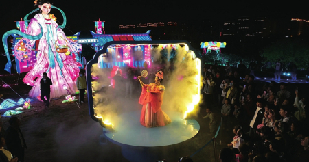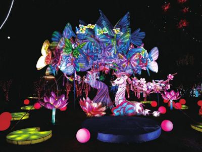 在百花的傳說中,十二月令花神的傳說最令人神往。在桃花島上,梅花、杏花、桃花、牡丹、石榴、蓮花、蜀葵、桂花、菊花、木芙蓉、山茶、水仙,各路花神身著華服,在所屬花燈前翩翩起舞,燈光人影交織,盡顯浪漫。“十二花神”每晚分時(shí)段在桃花云臺,跳起如云似幻的祈福舞,笑容明媚,面若桃紅,傾倒眾人。無人機(jī)組集合成孔明燈形狀,載著每個(gè)人最虔誠的心愿緩緩升空。“十二花神”隨即走下“神臺”,出沒在各個(gè)角落,讓整個(gè)桃花島亦真亦幻。穿行其中,與“花神”擦肩而過,仿佛穿越時(shí)空,進(jìn)入神話世界。