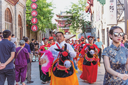 輕煮時(shí)光慢煮茶,三五好友聚一堂,在美食云集的小吃街,品一品忻州雜糧美食,擇一處院落嘗一嘗農(nóng)家樂(lè)的特色滋味。在茶樓聽(tīng)?wèi)虼蚺?、談笑風(fēng)生,各路好戲連連上演,帶著邊塞風(fēng)骨,唱得淋漓盡致。著一席漢服漫步街巷,無(wú)須矯揉造作,也無(wú)須刻意擺拍,一顰一笑皆入畫(huà),綠意的古城總有一種風(fēng)景值得駐足。剪紙、面塑、陶藝……集結(jié)忻州非遺傳承人,復(fù)蘇古城記憶,老忻州的手作與現(xiàn)代文創(chuàng)在這里交融扎根,民間藝術(shù)在這里生生不息。忻州古城的市集生活總上演著不同的精彩,新潮好玩的潮樂(lè)市集、紅火熱鬧的南門(mén)市集、充滿故事的古玩市集,在這里可以邂逅心頭好物,遇見(jiàn)不同的生活與態(tài)度。