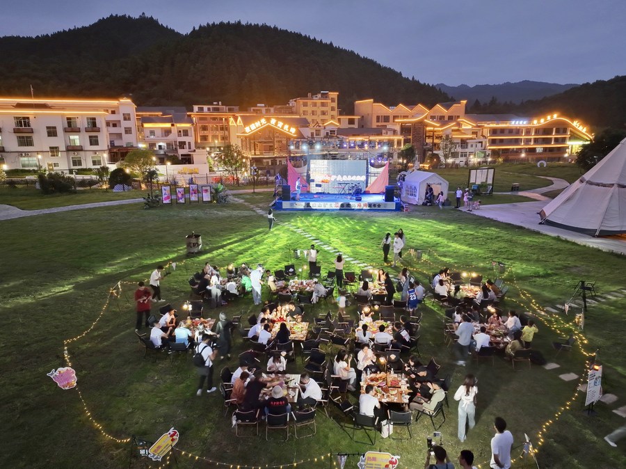 新華社南昌10月6日電(記者朱雨諾、程迪)夜幕之下,江西萍鄉(xiāng)市武功山景區(qū)的驢友帳篷大本營(yíng)內(nèi)熱鬧非凡。喜愛(ài)音樂(lè)的游客在演出現(xiàn)場(chǎng)跟著歌曲旋律搖擺,也有不少游客三五成群,坐在天幕下邊看電影邊吃燒烤,享受著假期悠閑時(shí)光。