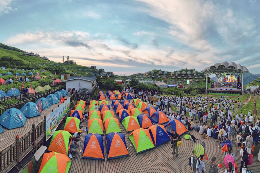 江西萍鄉(xiāng)市武功山觀音宕帳篷營(yíng)地第十六屆武功山帳篷季現(xiàn)場(chǎng)(2023年7月22日攝)。新華社發(fā)(受訪者供圖)