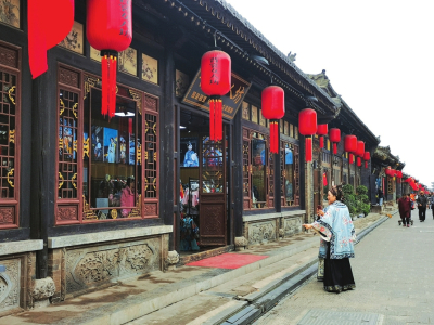 10月18日,秋雨綿綿,古城里依然游人如織,有持傘漫步欣賞古城美景的,有在街旁特色飯店品嘗美食的,還有在小酒館休閑放松的……不過,最引人注目的還是景區(qū)內(nèi)十步一間的“旅拍”店,以及隨處可見的“晉商少奶奶”“晉商大小姐”,她們像一道耀眼的風景,在明清古建的映襯下,讓游客瞬間有穿越的感覺。