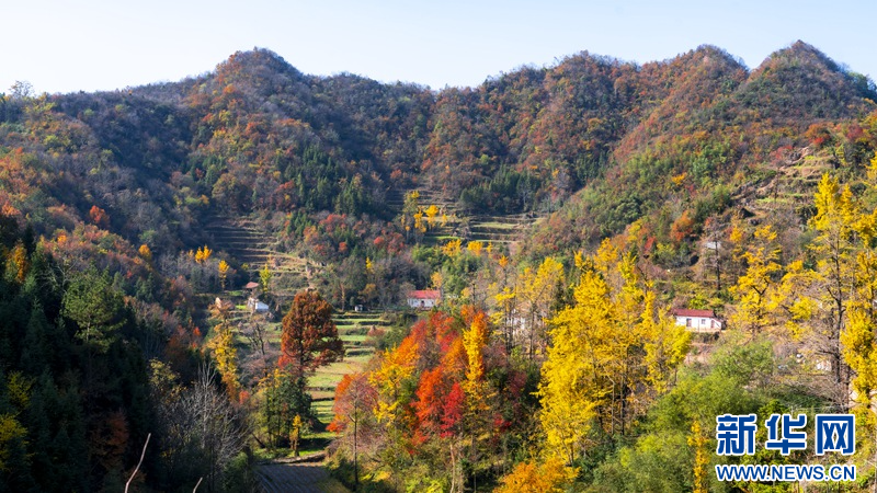 ?初冬,金色的陽光灑在湖北省南漳縣李廟鎮(zhèn)的山林中,宛如大自然無意中打翻了調(diào)色盤,呈現(xiàn)出紅色、金色、綠色交織的絢麗色彩,美如一幅幅畫卷。(華君、 劉思)