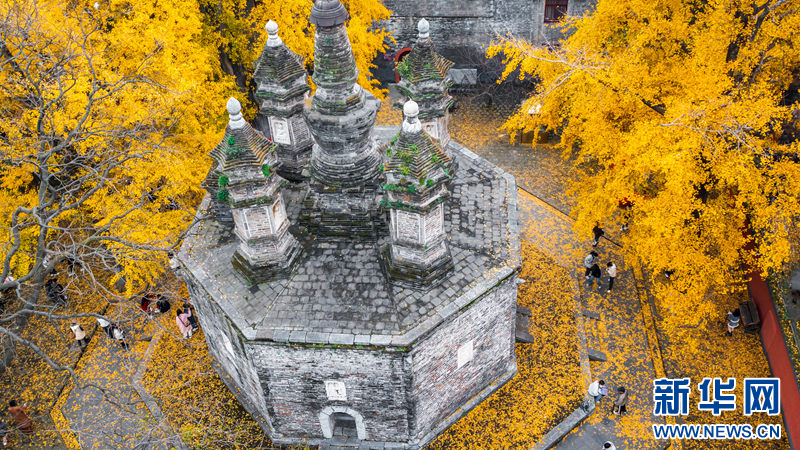 廣德寺內(nèi)的銀杏樹(shù)距今已有1500多年歷史,被人們稱為“將軍樹(shù)”。如今樹(shù)葉變黃,“將軍”猶如身披“金甲”。輕風(fēng)拂過(guò),銀杏樹(shù)葉隨風(fēng)飄落,鋪滿整個(gè)寺院,仿佛金黃的地毯,成為這個(gè)季節(jié)最美的風(fēng)景,吸引了眾多游客前來(lái)拍照打卡。(吳肖、劉夢(mèng)靈)