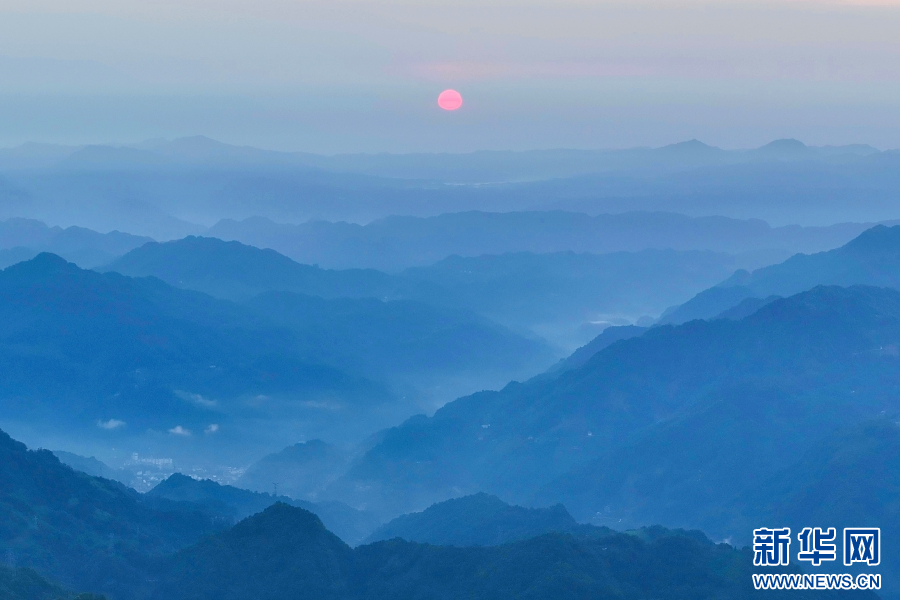 日出群山,宛如一幅水墨畫卷(視頻截圖)。新華網(wǎng)發(fā)(大關(guān)縣融媒體中心供圖)