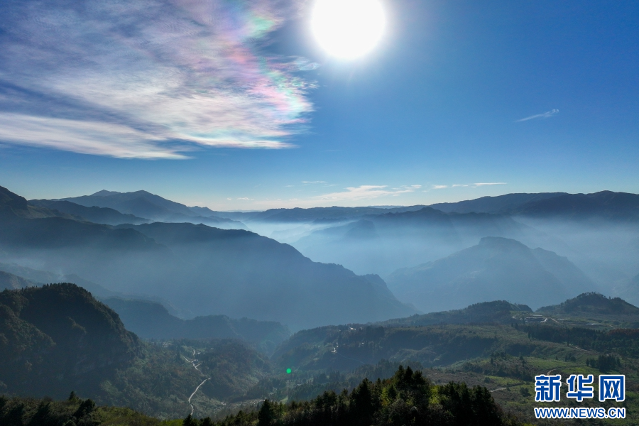 天空現(xiàn)“七彩祥云”(視頻截圖)。新華網(wǎng)發(fā)(大關(guān)縣融媒體中心供圖)