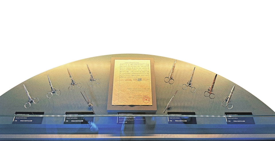 大同紅色記憶館內(nèi)有一個(gè)專屬展廳,珍藏著白求恩同志曾經(jīng)用過的12件醫(yī)療器械。這些醫(yī)療器械是白求恩從美國(guó)帶來,并曾在大同靈丘抗戰(zhàn)前線使用過的。館內(nèi)負(fù)責(zé)人任冬介紹,這些醫(yī)療器械是由大同市渾源縣王莊堡村退伍老兵宮福祥老人于1984年捐贈(zèng)給雁北文物工作站的。如今,它們已經(jīng)成為該館的“鎮(zhèn)館之寶”,見證了白求恩大夫在抗戰(zhàn)前線的無私奉獻(xiàn)和國(guó)際主義精神。