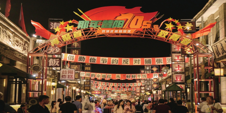 那年昔陽特色民俗街區(qū)昏黃的燈光,如同定格的照片,懷舊又親切。街兩旁的建筑保持著二十世紀(jì)六七十年代的模樣,有著濃郁的時代特色。