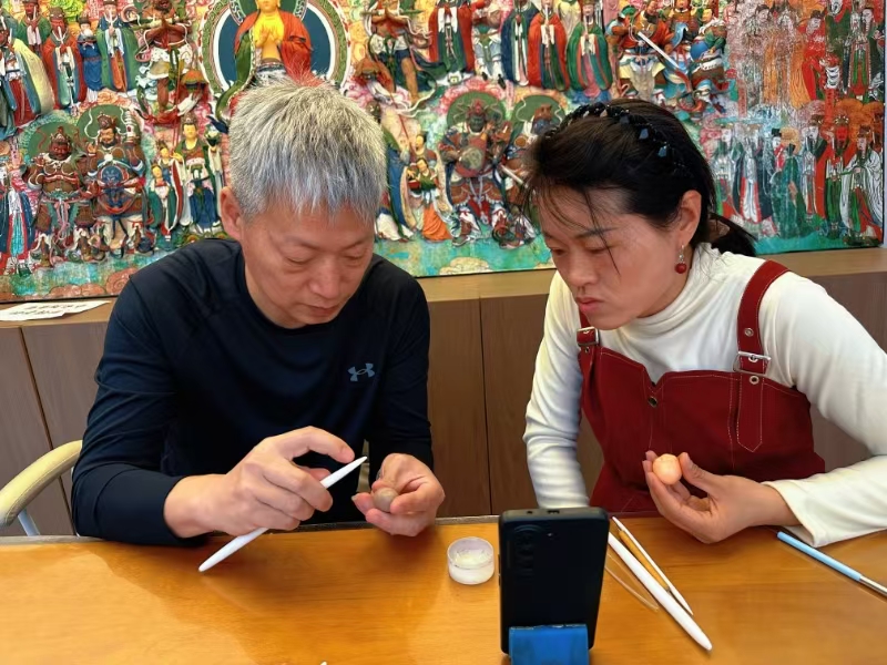 “在這條街上,聚集了很多和我一樣的手藝人。”大海面塑所在的關(guān)帝廟北巷文創(chuàng)街上,一家家非遺店鋪林立——葫蘆烙畫店鋪內(nèi),忻州市忻府區(qū)葫蘆烙畫非物質(zhì)文化遺產(chǎn)代表性傳承人李云珍正手拿烙鐵在葫蘆上創(chuàng)作《八駿圖》;“草木染”非遺體驗店里,有游客在體驗扎染的樂趣;鋦藝?yán)?,游客圍在忻州市忻府區(qū)鋦瓷藝術(shù)非物質(zhì)文化遺產(chǎn)代表性傳承人王克劍身邊,看一件破碎的瓷器如何經(jīng)過他的雙手重生……