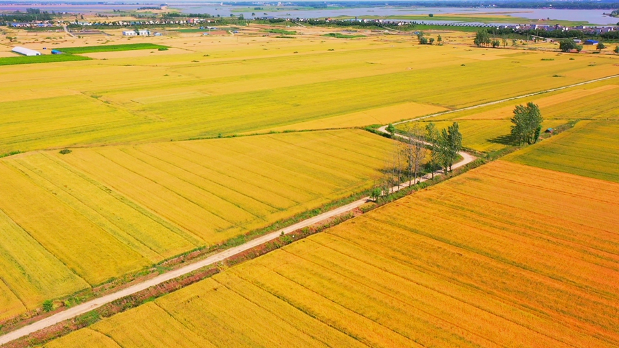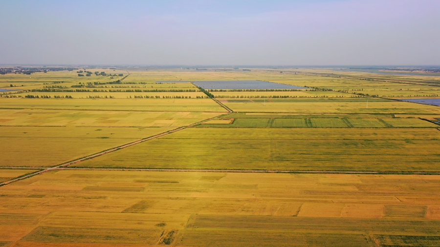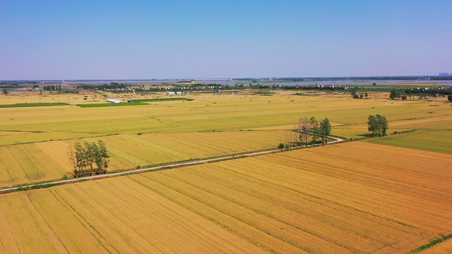 初夏時節(jié),安徽省潁上縣廣袤大地上麥香四溢。麥田在陽光下泛著金黃,麥浪滾滾,收獲在望。麥田、村落、河流、阡陌構(gòu)成一幅美麗的田園風光。