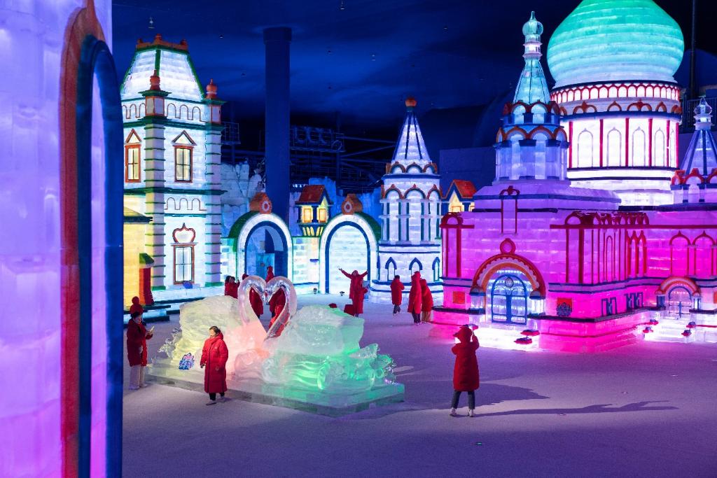 夢幻冰雪館吸引游客“打卡”。新華社發(fā) 今夏,哈爾濱冰雪大世界將以5大核心產(chǎn)品和10大亮點項目,推出“啤酒+冰雪+演出+科技+活動”融合新業(yè)態(tài),持續(xù)優(yōu)化文旅消費新場景,為“冰城”夏季旅游打造新的“流量密碼”。