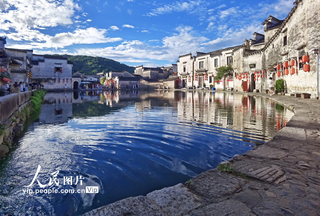 2025年7月20日,安徽黃山市黟縣宏村風(fēng)景旖旎,宛如一幅天然的水墨畫卷,讓人流連忘返。楊潔攝(人民圖片網(wǎng))
