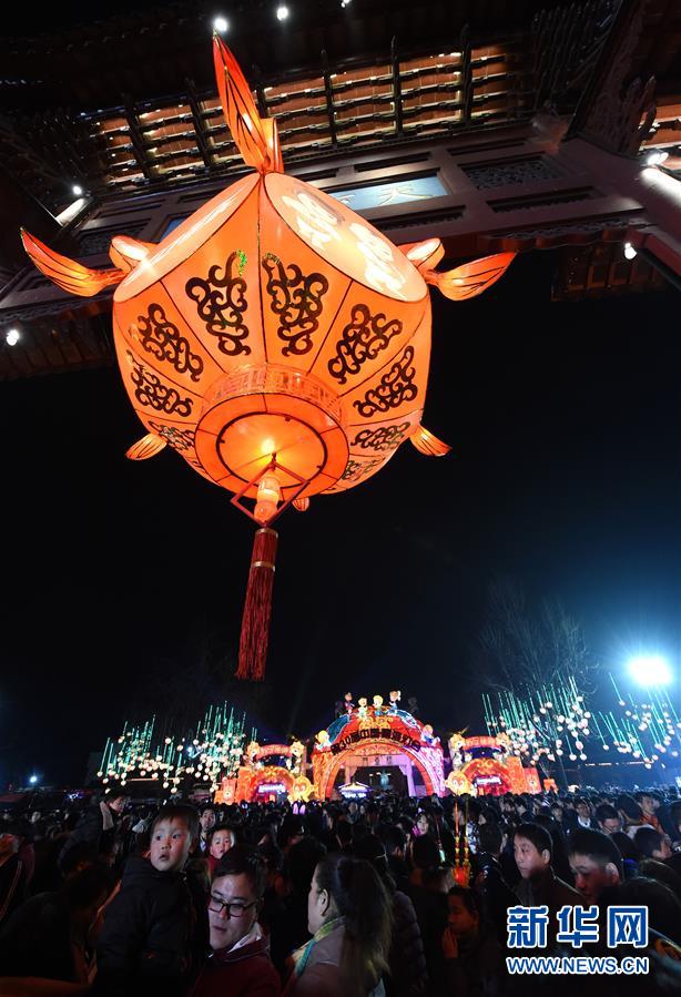 2月22日晚,游人在夫子廟景區(qū)觀燈游玩。當(dāng)晚,在江蘇南京夫子廟秦淮風(fēng)光帶舉辦的秦淮燈會(huì)彩燈齊放,人們前來觀燈鬧元宵。 新華社記者孫參攝