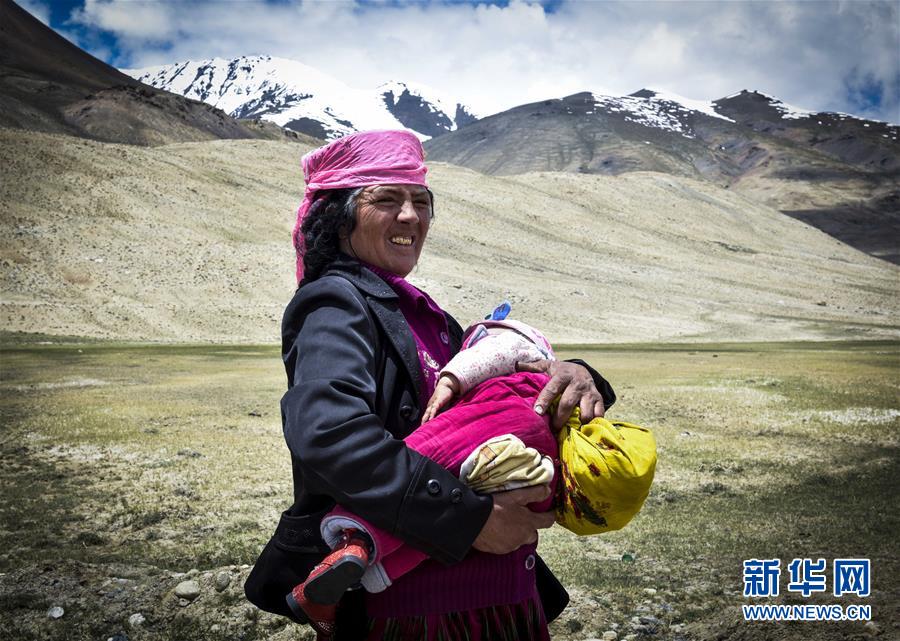 在帕米爾高原瓦罕走廊,一位牧民抱著孫子去親戚家串門(6月4日攝)。6月的帕米爾高原風(fēng)光旖旎,吸引國(guó)內(nèi)外大量游客前來領(lǐng)略它的神韻。 新華社記者 趙戈 攝