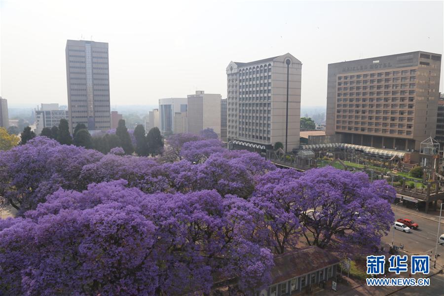 在津巴布韋首都哈拉雷,隨處盛開的藍花楹成為靚麗的風景(10月2日攝)。 近日,位于非洲南部的津巴布韋進入春季,全國各地的藍花楹紛紛盛開。津巴布韋風光秀麗,擁有維多利亞瀑布、大津巴布韋遺址等5處世界自然或文化遺產(chǎn)。首都哈拉雷有多處神奇的平衡石景觀,同時也因出色的園藝被稱為非洲“花城”。新華社發(fā)(陳雅琴攝)