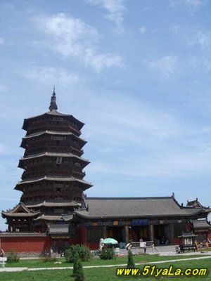 應(yīng)縣木塔佛宮寺釋迦塔位于山西省應(yīng)縣城內(nèi)西北佛宮寺內(nèi)。俗稱應(yīng)縣木塔。塔總高67.31米,是我國現(xiàn)存時(shí)代最早的木結(jié)構(gòu)高層建筑.佛宮寺釋迦塔建于后晉天福年間,遼清寧二年(1056年)重修。