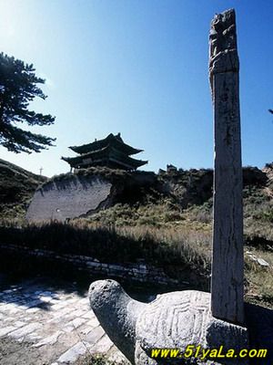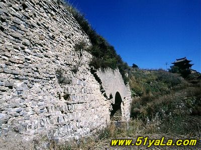 雄關雁門,居“天下九塞”之首(《呂氏春秋》)。從戰(zhàn)國時期的趙武靈王起,歷代都把此地看作戰(zhàn)略要地。趙置雁門郡,此后多以雁門為郡、道、縣建制戍守。雁門關之稱,始自唐初。因北方突厥崛起,屢有內犯,唐駐軍于雁門山,于制高點鐵裹門設關城,戍卒防守?!短茣?middot;地理志》描述這里“東西山巖峭拔,中有路,盤旋崎嶇,絕頂置關,謂立西徑關,亦曰雁門關。”后經五代十國、宋、遼、金、元約四百余載。元朝設千戶所,關城被毀。明代吉安侯陸享于洪武七年(1374)自監(jiān)民工筑新關于舊關東北十里處的要道。南距代城縣四十余里,北鄰廣武古城二十一里,地勢更為險要。明末清初的著名學者顧炎武曾親臨此地。他寫道“雁門重關,山巒在演,霞飛云舉,兩山對峙,其形如門,而飛雁出于其間?!痹撽P城,周長二里,墻高二丈,石座磚身,雉堞為齒,洞口三重,曰東門、西門、小北門。東門上筑樓臺,曰雁樓,門額嵌石匾一方,橫書“天險”(即“天險”)。西門上筑有楊六郎廟,門額嵌石匾一方,橫書“地利”(即“地利”)。小北門未設頂樓,但磚石結構,格外雄固。門額石匾橫刻:“雁門關”三字。洞門兩側鑲嵌磚鐫楷書檢聯(lián):“三關沖要無雙地,丸塞尊崇第一關?!睎|門外北側建有“靖邊寺”祀戰(zhàn)國時代的軍事家趙將李牧。西門外右側建有關帝廟。關城正北置有駐軍營房,東南設有練兵教場。整個關城建筑,虎踞龍盤,雄偉壯觀。明清以后,關城雖屢有重建。但隨著我多民族統(tǒng)一國家疆域的逐步形成,內長城作為“內邊”的作用已經失去,所屬的雁門雄關也隨之荒廢?,F(xiàn)在的關城僅在東門、西門、小北門三個門洞和靖邊寺前的一對石獅,一副石旗桿,明鐫李牧碑石一塊,以及寺后的數(shù)株青松。