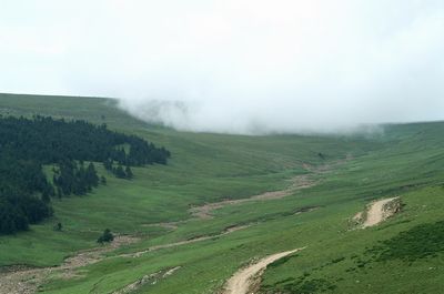 荷葉坪因其山體像荷葉而得名。位居寧武、五寨、岢嵐三縣交界處,在管涔山上與蘆芽山、馬倫草原成三足鼎立的態(tài)勢(shì)。最高處海拔2784米,比蘆芽山主峰還高。為晉西北最高峰,電視差轉(zhuǎn)臺(tái)4844就建在主峰。整個(gè)山體屬花崗巖結(jié)構(gòu),但寬廣的頂部覆蓋著厚厚的土層,經(jīng)過多年的雨雪滋養(yǎng),特別適合林木和牧草及中藥材生長(zhǎng)。每到夏日,綠草如茵,鮮花盛開,空氣清新。這時(shí)周邊三縣的村民就將牛馬趕上坪臺(tái),做好記號(hào),不再管了,深秋時(shí)再去找回。