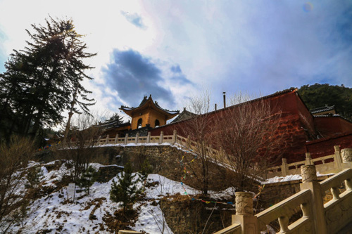 鎮(zhèn)海寺位于山西省忻州市五臺縣臺懷鎮(zhèn)南清水河西側(cè),距臺懷鎮(zhèn)5公里。坐落在“二龍戲珠”的風(fēng)水寶地,左右兩側(cè)環(huán)繞的山峰,猶如兩條飛龍落下河谷,拱背彎腰,騰挪圍抱;寺院建筑在兩山合抱的一個石山嘴上,宛若一顆二龍嬉戲的寶珠。山豁口有蒼老挺拔的大松樹,走在松樹林間的蹊徑,再聽颯颯的松風(fēng),給人一促靜寞幽深的感覺。入寺四望,南側(cè)的山峰,長滿密密麻麻的杉樹和楊樹,北側(cè)的山巔上,千年古松出于(山免)巖石之中。這里是五臺山的一處風(fēng)景區(qū),濃蔭蒼翠的古松掩映山寺,在五臺寺廟區(qū)還是少見的。
