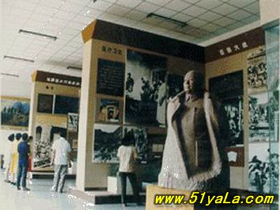 八路軍太行紀(jì)念館于1989年9月3日落成,它是全國(guó)第一座系統(tǒng)反映八路軍總部、中共中央北方局和八路軍野戰(zhàn)政治部以及朱德、彭德懷、左權(quán)、任弼時(shí)、劉伯承、鄧小平、羅瑞卿、楊尚昆等老一輩革命家在太行山革命根據(jù)地八年抗戰(zhàn)的偉大革命實(shí)踐和太行山根據(jù)地人民斗爭(zhēng)事跡的綜合紀(jì)念館總建筑面積為4349平方米,鋼筋水泥混合結(jié)構(gòu),建筑古樸典雅,結(jié)構(gòu)精巧,雕飾富有民族特色。館舍由照壁、六角井亭和四周的配房組成。館內(nèi)由序幕廳、四個(gè)展廳、題詞廳、電影廳、賓客休息廳等五個(gè)部分組成。當(dāng)進(jìn)入八路軍太行紀(jì)念館大門(mén)時(shí),首先躍人眼簾的是路兩側(cè)成蔭的松柏,爭(zhēng)艷的鮮花,如茵的草坪。鄧小平同志親筆題寫(xiě)的“八路軍太行紀(jì)念館”八個(gè)金字匾額懸放在建筑物的中央。穿越館前草坪,拾階而上,便步入寬闊的序廳?;厥幵诖髲d中的八路軍戰(zhàn)歌《在太行山上》,激昂嘹亮的旋律,把我們帶回到烽火連天的抗日歲月。大廳周?chē)鸁o(wú)救三角形圖案,猶如太行千山萬(wàn)壑,到處在燃燒著抗日烽火。大廳中央是褐色巨型立體“八”字。一尊八路軍戰(zhàn)士浮雕像,在八字上端顯得氣宇軒昂,象征著灑滿(mǎn)烈士鮮血的紅色土地上,巍然屹立起一座歷史豐牌。它鐫刻著中國(guó)共產(chǎn)黨所領(lǐng)導(dǎo)的八路軍堅(jiān)持八年抗戰(zhàn),打敗日本侵略者的豐功偉績(jī),它象巍巍太行一樣,與日月同輝,名垂史冊(cè)!由序廳向左走便進(jìn)入了第一展廳?!巴M(jìn)太行,創(chuàng)建抗日民主根據(jù)地”,—幅幅畫(huà)面伴隨著解說(shuō)員的解說(shuō)詞把我們帶回到那烽火年代?!熬乓话恕钡呐?,蘆溝橋的槍聲,中華大地在燃燒,山河在流淚,有血性的中華兒女哪能不群情激昂、灑一腔熱血雪恥興國(guó)呢!在國(guó)破家亡的關(guān)鍵時(shí)刻,中共中央于1937年8月22日在陜北洛川召開(kāi)政治局?jǐn)U大會(huì)議,會(huì)議指出:自蘆溝橋抗戰(zhàn)后,中國(guó)的政治形勢(shì)已開(kāi)始了實(shí)行抗戰(zhàn)的新階段。黨的中心任務(wù)是“動(dòng)員一切力量,爭(zhēng)取抗戰(zhàn)勝利”,同年8月將陜甘寧邊區(qū)的中國(guó)工農(nóng)紅軍主力,改編為國(guó)民革命中第八路軍。朱德總司令、彭德懷副總司令率三師之眾,東渡黃河,出師華北,重創(chuàng)日寇。八路軍逐漸向敵后實(shí)施戰(zhàn)略進(jìn)攻,總部機(jī)關(guān)和129師隨即向晉東南挺進(jìn)開(kāi)辟以太行山為依托的晉冀豫抗日根據(jù)地。從此,太行山成為八路軍總司令部轉(zhuǎn)戰(zhàn)、駐扎之地,成為華北敵后抗日根據(jù)地的腹心地區(qū)。跟隨解說(shuō)員的講解,緩緩進(jìn)入第二個(gè)展廳。