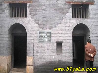 “蘇三監(jiān)獄”在今洪洞縣政府院內(nèi)西南,亦即明洪洞縣衙西南角。一進掛有“明代監(jiān)獄”匾額的大門,首先看到的便是蘇三的塑像,外院當(dāng)年監(jiān)獄的辦公場所,右邊的院落是普通監(jiān)牢,中間是過道,兩邊共有監(jiān)牢十余間,過道頂上布有鐵絲網(wǎng),網(wǎng)上掛有銅鈴,一有犯人企圖越墻逃跑,便會觸響銅鈴。過道的盡頭,正對的是獄卒的值班室,右面的墻上有獄神的供位,傳說當(dāng)年囚犯入獄都要參拜獄神,就是獄神下面的墻基處,有一小洞,是當(dāng)年運送尸體的出口,犯人在獄中病死或是被打死,是不能從大門抬出去的,只能從這個小洞拉出去。過道盡頭的左邊,便是死囚牢的大門,死囚牢雙門雙墻,門上畫有狴犴,狴犴是龍的兒子,長得卻象老虎,因此人們誤稱為“虎頭牢”,大約是因為龍生九子,子子不同,狴犴專門掌管刑獄,大門只有一米六高,所有進入死囚牢的人都要在狴犴像前低頭,顯示對法律的敬畏。進了門洞,里面還有一道門,而這兩道門卻是一扇從右開,一扇從左開,不明就里的囚犯如果越獄,往往出了第一道門卻怎么也打不開第二道門,一個小小的改動就能起到拖延犯人越獄時間的作用,不能不佩服古人的智慧。進入死牢院,右面是一堵高墻,左面就是當(dāng)年關(guān)押蘇三的牢房,里面有蘇三的塑像。死囚院的中央還有當(dāng)年蘇三坐監(jiān)時洗衣的水井和石槽,井口留有一道道繩索磨下的印記,井口只有半尺多寬,這是為了防止死囚投井自殺。據(jù)說,右面的高墻里灌裝的都是流沙,如果犯人想要挖墻越獄,流沙便會從挖開的小口中源源不斷地流來,使其難以挖通圍墻。1964年我國著名考古學(xué)家王冶秋先生曾在洪洞考察確認,蘇三監(jiān)獄為我國罕見的明代監(jiān)獄,并題詩曰:“虎頭牢里羈紅妝,一曲攪亂臭水漿。王三公子今何在?此處空留丈八墻?!笔陝觼y期間,蘇三監(jiān)獄被拆毀。為了使“蘇三監(jiān)獄”這一僅存的明代監(jiān)獄得以保留,洪洞縣人民政府后做出了修復(fù)“明代蘇三監(jiān)獄”的決定。修復(fù)事宜于1984年5月開始,同年10月竣工。