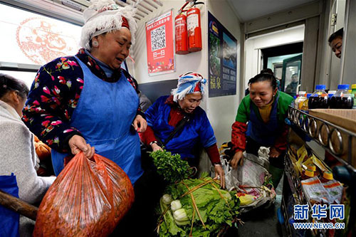 1月27日,乘客在5639次列車上賣菜。 由貴州玉屏開往貴陽的5639次列車是輛綠皮“慢火車”。沿途群眾每天挑著籮筐上車,將自家出產(chǎn)的農(nóng)作物帶到貴陽、凱里等地販賣,再坐著火車把生產(chǎn)資料和日用品帶回家。時(shí)間一長,不少乘客直接在列車上買賣貨物。春節(jié)將至,蔬菜水果等農(nóng)產(chǎn)品交易較往日更加紅火,列車上的“年貨市場”洋溢著濃濃年味。 新華社發(fā)(許毅 攝)