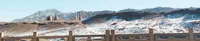 敦煌莫高窟前臨宕泉河,南西北三面呈環(huán)形,似懷抱,東面三危山高聳。晚餐后,記者走在宕泉河岸邊公路上,舉目遠(yuǎn)眺,潔白的大雪讓莫高窟純凈晶瑩、透亮明媚,也讓人心境澄澈,如段文杰所言:一畫入眼中,萬(wàn)事離心頭。(董洪亮)