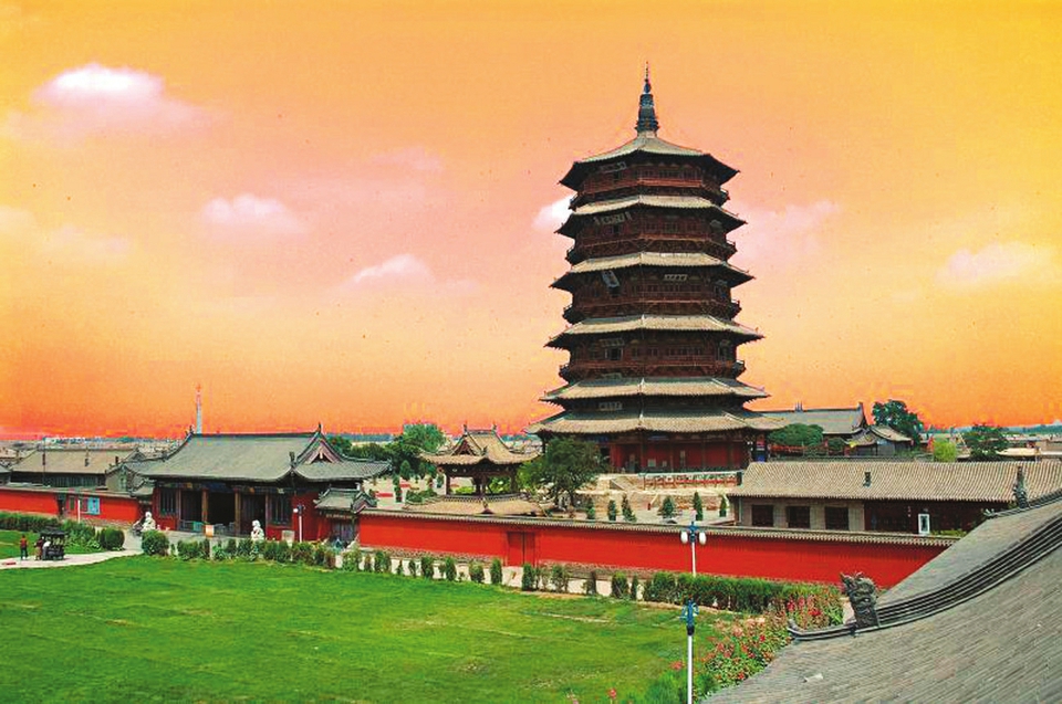 數(shù)字“六”,在四個方位上添加了代表上與下的天、地兩方,就有了六方立體空間觀念,即是從平面空間到立體空間認(rèn)識的升進(jìn)。木塔六檐,正好詮釋了釋迦示六年之苦行,道果圓成;破六欲之天魔,神光大千;因地六度具滿,六通遍及大千,授記則六合乾坤而震動,說法則六時花雨已繽紛。六花飛六合之內(nèi),六位六天之中。眾生隨逐六根放逸,良由六識攀緣;貪六塵之幻化,造六趣之輪回。今則舉身拜塔,一心朝佛,命六合之大德,修六度之懺文,憑六時之懇切,解六道之愆尤。