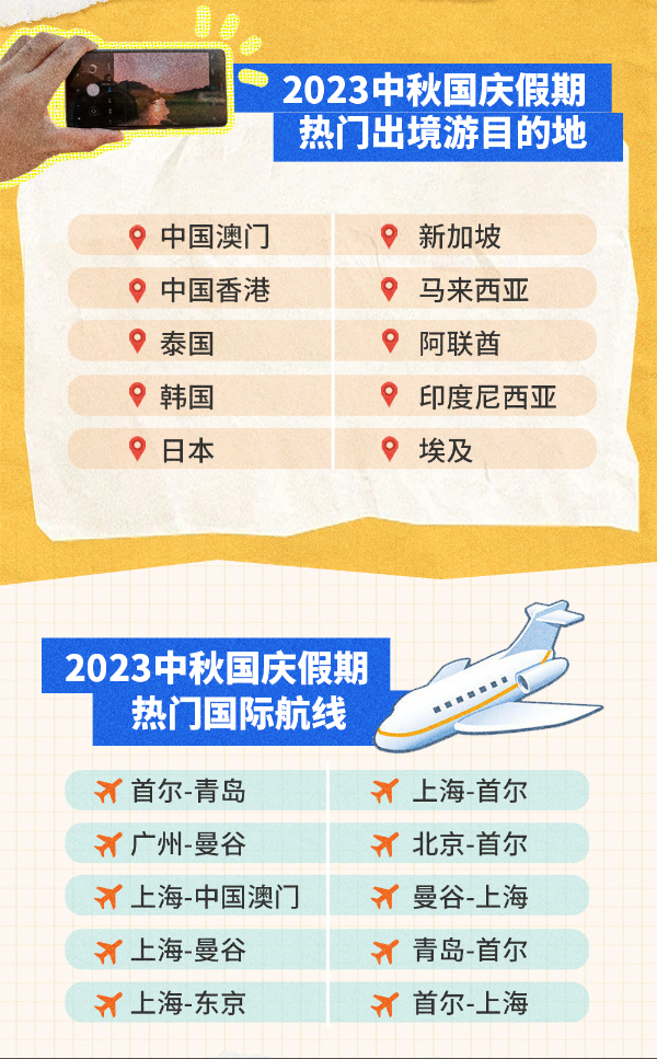 出境游市場也迎來了重要復(fù)蘇節(jié)點。攜程《中秋國慶旅游總結(jié)報告》數(shù)據(jù)顯示,假期期間,出境游訂單同比增長超8倍。同程旅行《2023中秋國慶假期旅行消費報告》顯示,出境游熱門目的地分別為中國澳門、中國香港、泰國、韓國等。此外,歐洲、非洲、南美洲、澳大利亞等長線出境游目的地?zé)岫纫渤霈F(xiàn)快速增長。