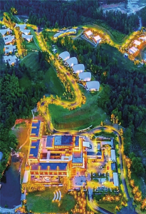 初到度假區(qū)已是深夜,順著車燈向前,一條鄉(xiāng)間公路蜿蜒伸展,不遠(yuǎn)處燈火通明的半山腰,便是黃山關(guān)麓國際旅游度假區(qū)。