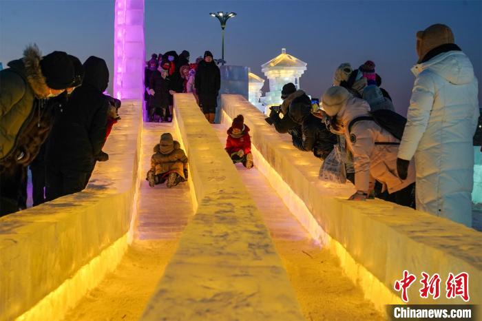 17日,第二十五屆哈爾濱冰雪大世界迎來首批游客 趙宇航 攝