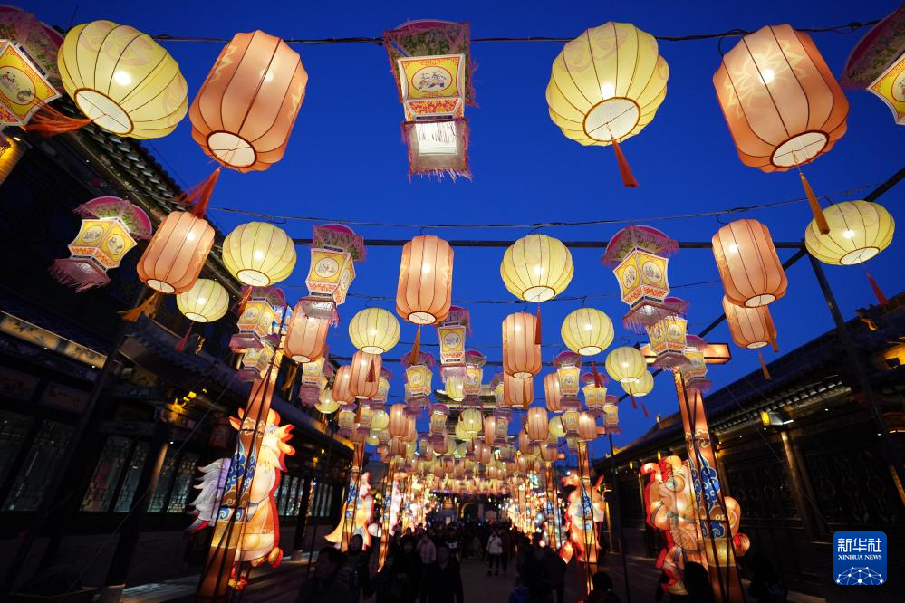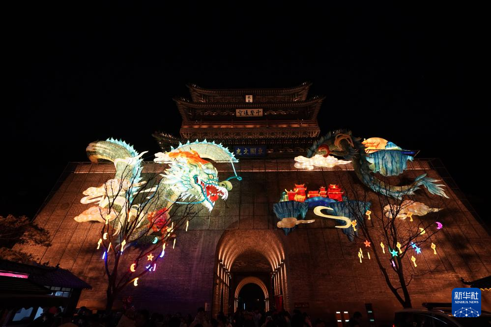 2月16日,游人在山西太原古縣城欣賞花燈。 春節(jié)期間,在山西省太原市晉源區(qū)太原古縣城舉辦的“錦繡太原中國年·鳳舞龍城花燈會”上,各類花燈流光溢彩、璀璨奪目,吸引眾多游人前來觀賞。 新華社記者 詹彥 攝