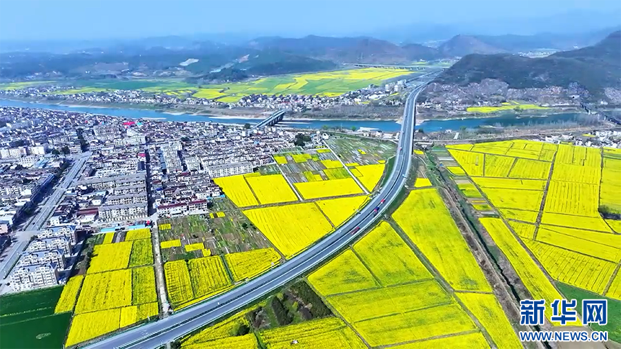 近日,安徽省池州市貴池區(qū)的油菜花盛開,金黃的花海鋪展在沃野田園,與民居、公路、車流相映成趣,構(gòu)成一幅生機(jī)勃勃的鄉(xiāng)村圖景。