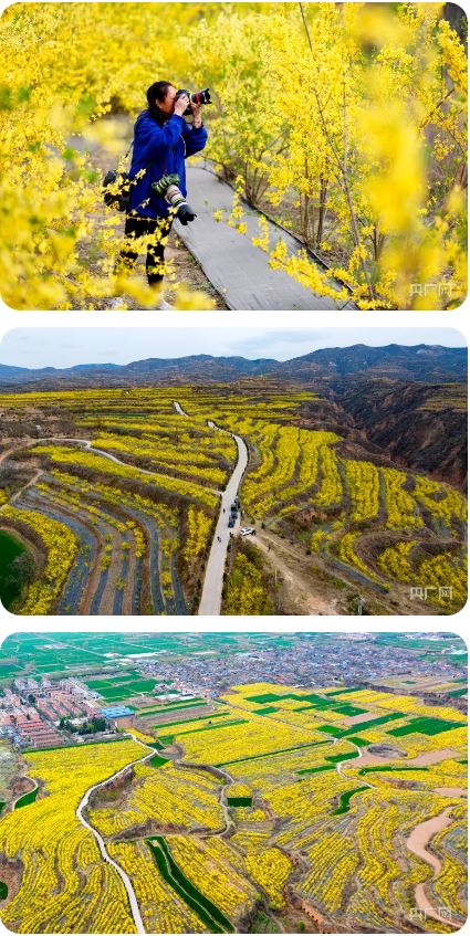 成片的連翹花隨著山勢起伏綿延(李現(xiàn)俊 攝)山西日報新媒體綜合報道 眼下,山西臨汾市翼城縣南梁鎮(zhèn)近2萬畝連翹花迎春盛開。成片的連翹花隨著山勢起伏綿延,燦若金色云霞,一派春意盎然的景象,吸引眾多游人前來觀花海、賞春光。