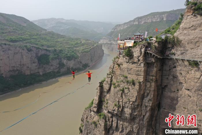 高空扁帶國際挑戰(zhàn)賽在黃河大梯子崖景區(qū)舉行。 河津市融媒體中心供圖