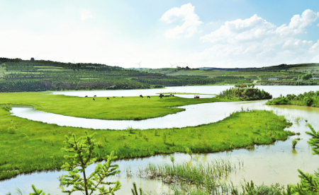 濕地公園建成后,良好的生態(tài)環(huán)境吸引了更多的野生動(dòng)物前來(lái)“安家”?!耙郧皫缀跎僖姷尼笞?、黃羊、狐貍等動(dòng)物多了起來(lái),珍稀鳥類品種也更加豐富?,F(xiàn)在國(guó)家一級(jí)重點(diǎn)保護(hù)動(dòng)物黑鸛,二級(jí)保護(hù)動(dòng)物大天鵝、鴛鴦、蒼鷹、雕鸮等12種動(dòng)物經(jīng)常出沒?!焙轮禽x說(shuō),“公園孕育了豐富的植物資源,現(xiàn)在有維管束植物280余種,植物從單一品種向多樣性發(fā)展?!?/p>