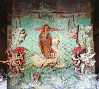 “因?yàn)椤逗谏裨挘何蚩铡?,我關(guān)注到福勝寺,特意趕來(lái)一看究竟,果然名不虛傳,比游戲中看到的更加令人震撼。這些彩塑不僅是藝術(shù)的杰作,更是歷史的見(jiàn)證,讓我對(duì)中國(guó)古代文化有了更深的認(rèn)識(shí)?!眮?lái)自陜西西安的侯女士便是《黑神話:悟空》的忠實(shí)玩家,她專程前來(lái)“朝圣”。懷著崇敬與好奇之心,侯女士一踏入福勝寺的大門(mén),便被“中國(guó)最美菩薩”渡海觀音所震撼。每一尊彩塑都獨(dú)具特色,有的威武雄壯,有的溫婉動(dòng)人,有的神秘莫測(cè)。