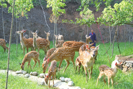 基地采用“公司+基地+合作社+農(nóng)戶”的經(jīng)營模式,鼓勵和扶持農(nóng)戶認(rèn)養(yǎng)梅花鹿和種植農(nóng)作物,并以訂單式回收,確保農(nóng)戶收益。上桑林村村民劉海軍四年前認(rèn)養(yǎng)了兩頭鹿,每年每頭鹿凈增收4000多元。“我認(rèn)養(yǎng)的是公鹿,村里認(rèn)養(yǎng)母鹿的收入更多,畢竟生下的小鹿都是個人的。還有在基地上班的也不少掙?!?/p>