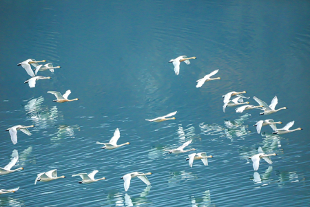 不只是桃河。近年來,在陽泉,龍華口水庫、平定縣二電廠調(diào)蓄水庫、尚怡水庫等河流匯集、水面寬廣的地方,經(jīng)常有天鵝、白鷺、鴛鴦、黑鸛、野鴨等各種野生鳥類出現(xiàn)。碧水長流,這些美麗的精靈逐水飛翔嬉戲,構(gòu)成一幅生機勃勃的春日畫卷。