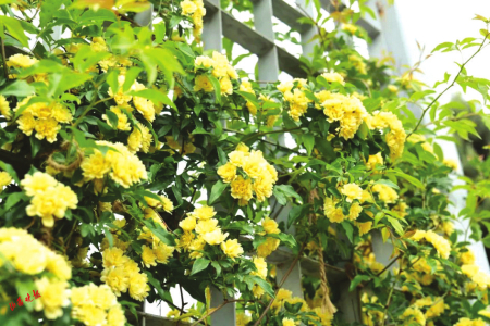 黃木香是薔薇科薔薇屬植物,攀緣小灌木,高度可達(dá)6米。花小型,多朵成傘形花序,花重瓣黃色。黃木香的生長速度非???,輕輕松松就可以長成一面花墻,它的枝條柔軟,像一個(gè)個(gè)藤蔓精靈,在園藝師的奇思妙想下,或成為墻壁精美的外衫,或可將一個(gè)普通的架子攀援成蜿蜒