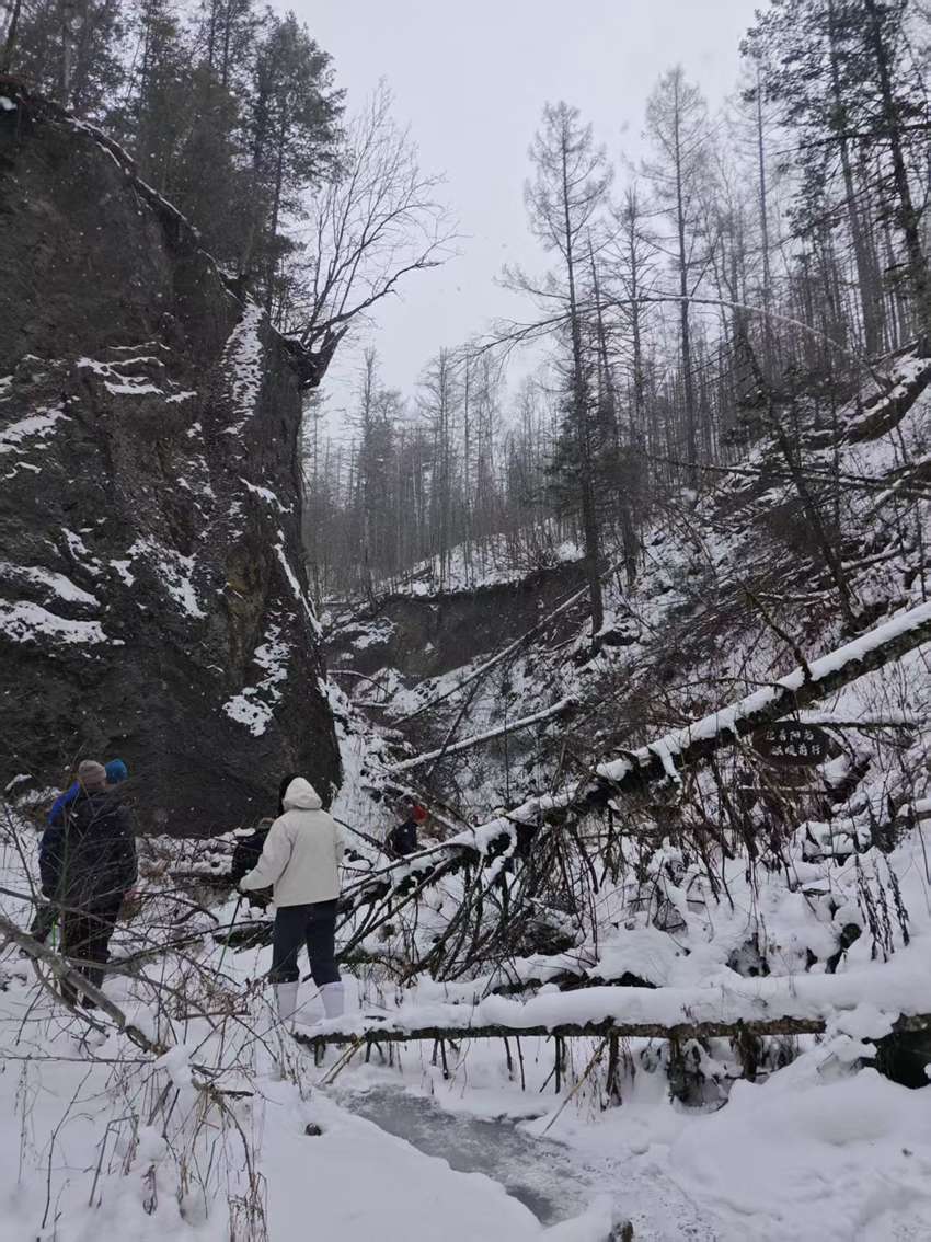 穿越途中,冰雪驚喜也從不缺席。清晨時分,峽谷內(nèi)常有霧凇奇景;若遇晴朗天氣,正午的陽光會讓積雪變得松軟,踩上去如同踏在棉絮上;傍晚時分,夕陽為石林鍍上暖金色,原本冷峻的峽谷瞬間變得溫柔起來。運(yùn)氣好時,還能在穿越途中偶遇覓食的松鼠,它們在雪地上跳躍的身影,為這片靜謐的秘境增添了幾分生機(jī)。