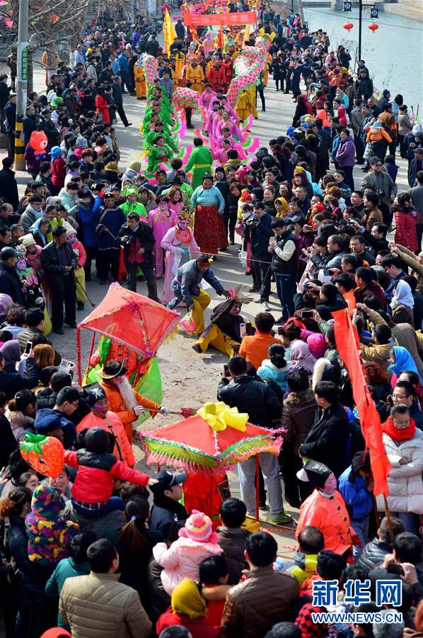 2月21日,社火隊在進行巡游拜年。當日,有著千年歷史的傳統(tǒng)村落——山東省章丘市三德范村組織31個社火隊舉行社火巡游拜年活動,在元宵佳節(jié)來臨之際為鄉(xiāng)親們送祝福。新華社記者 郭緒雷攝