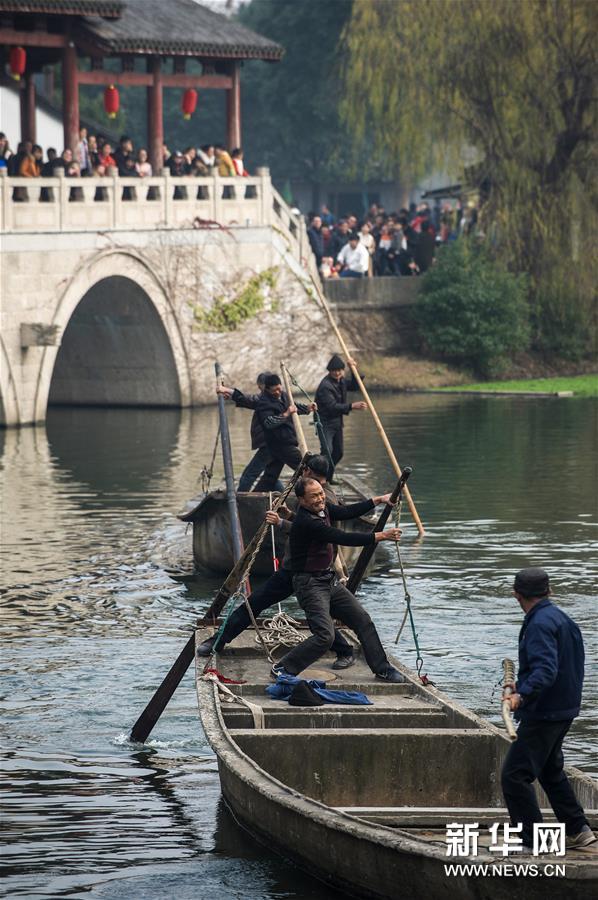1月2日,浙江省紹興市柯橋區(qū)安昌鎮(zhèn)舉行水上拔河趣味表演。水上拔河是紹興水鄉(xiāng)的傳統(tǒng)活動(dòng),不僅是力量的較量,也是當(dāng)?shù)貍鹘y(tǒng)劃船技巧的展示。新華社發(fā)(張輝 攝)