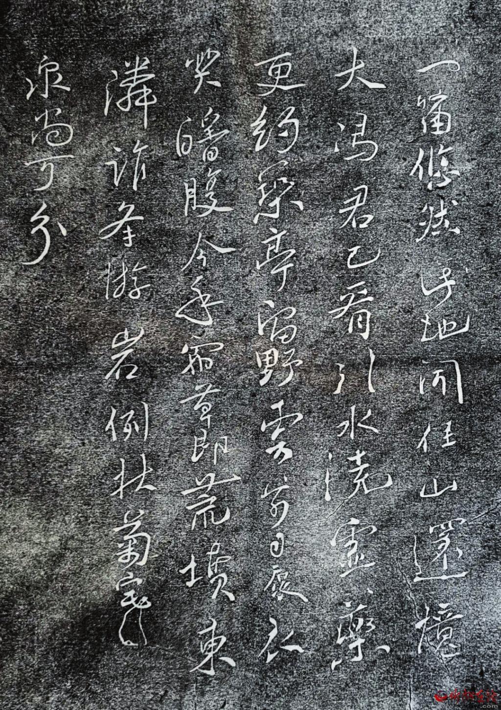 凡拜謁過野史亭的人,都曾看到過亭壁上所嵌的遺山先生像和五塊詩(shī)文石刻。石刻均有小字作注,尤其西壁的一塊上竟刻著500余字,因空間狹窄,刻痕甚淺,一些字跡已難辨識(shí)。幸運(yùn)的是該石拓片背面筆痕十分明顯,于是筆者就著燈光將這段文字全部抄錄下來,得以了解亭中每塊石刻的詳細(xì)信息。
