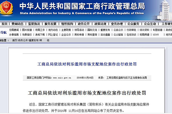 新華網(wǎng)北京11月16日電(記者婁奕娟)11月16日,國(guó)家工商行政管理總局官網(wǎng)發(fā)布處罰決定書(shū)稱,2009-2013年期間利樂(lè)集團(tuán)(簡(jiǎn)稱利樂(lè))有關(guān)企業(yè)濫用市場(chǎng)支配地位案件,對(duì)其依法作出行政處罰,其中處罰款近6.68億元人民幣。