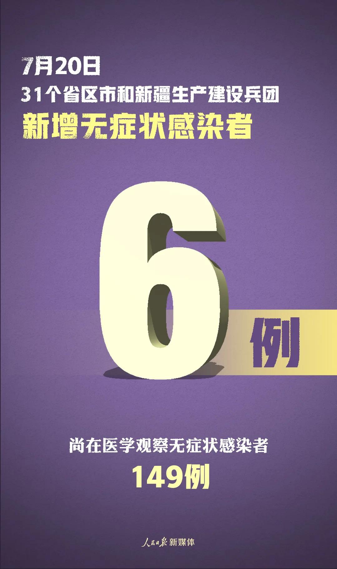 7月20日0—24時(shí),31個(gè)省(自治區(qū)、直轄市)和新疆生產(chǎn)建設(shè)兵團(tuán)報(bào)告新增確診病例11例,其中境外輸入病例3例(上海2例,四川1例),本土病例8例(新疆7例,兵團(tuán)1例);無新增死亡病例;無新增疑似病例。
