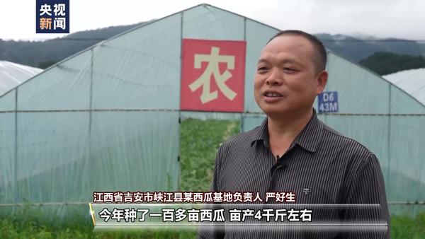 江西省吉安市峽江縣某西瓜基地負(fù)責(zé)人 嚴(yán)好生:今年種了一百多畝西瓜,畝產(chǎn)4千斤左右,預(yù)計(jì)總產(chǎn)值在40萬以上。
