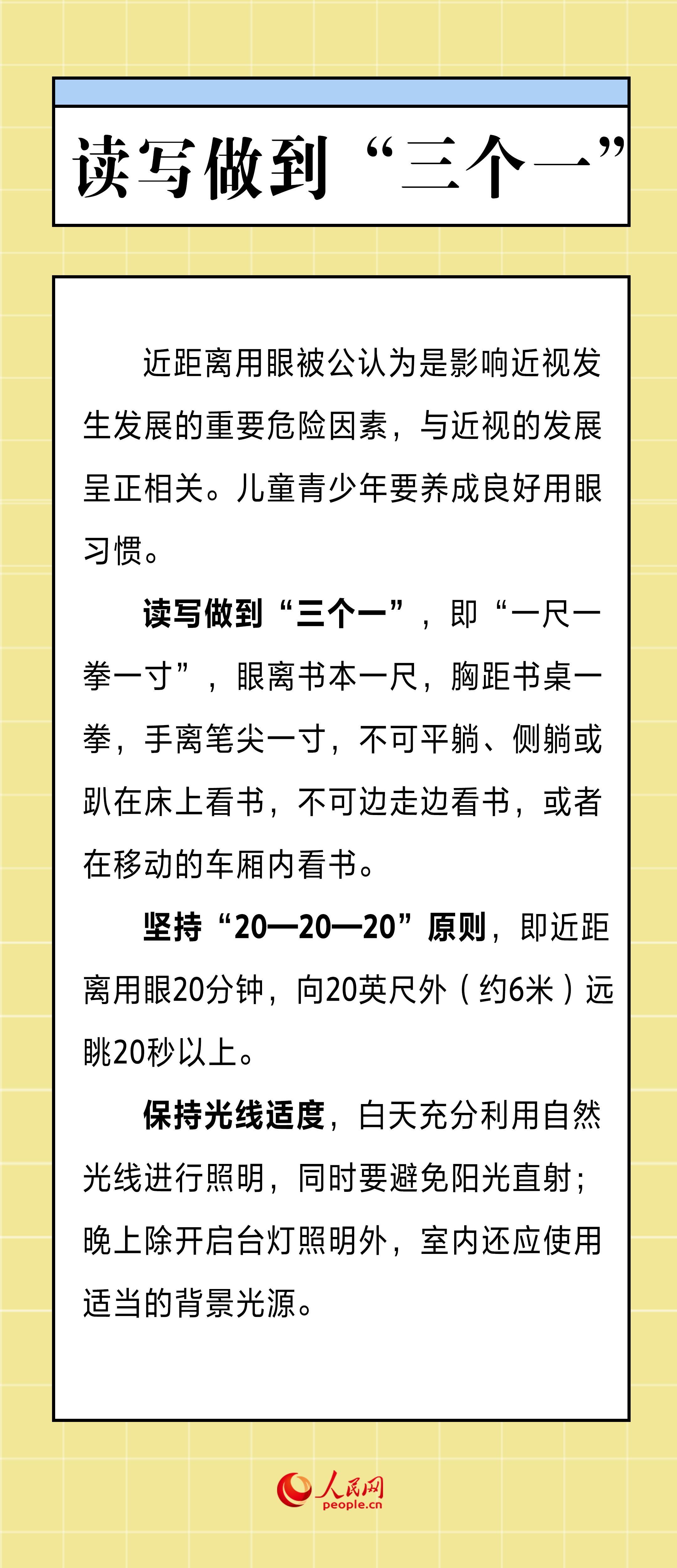 近年來,我國近視發(fā)生率居高不下,近視已成為影響我國國民尤其是兒童青少年眼健康的重大公共衛(wèi)生問題?!笆罴贂r間長,兒童青少年如果生活作息不規(guī)律、戶外活動不足、長時間近距離用眼,很容易發(fā)生近視或加深近視程度?!焙笔和嗌倌杲暦乐沃行闹魅巍⑽錆h大學人民醫(yī)院(湖北省人民醫(yī)院)眼IV科主任周煉紅在接受人民網(wǎng)記者采訪時表示,家長要從孩子出生就樹立近視防控意識,給孩子一個健康視覺環(huán)境,幫助孩子養(yǎng)成良好用眼習慣。