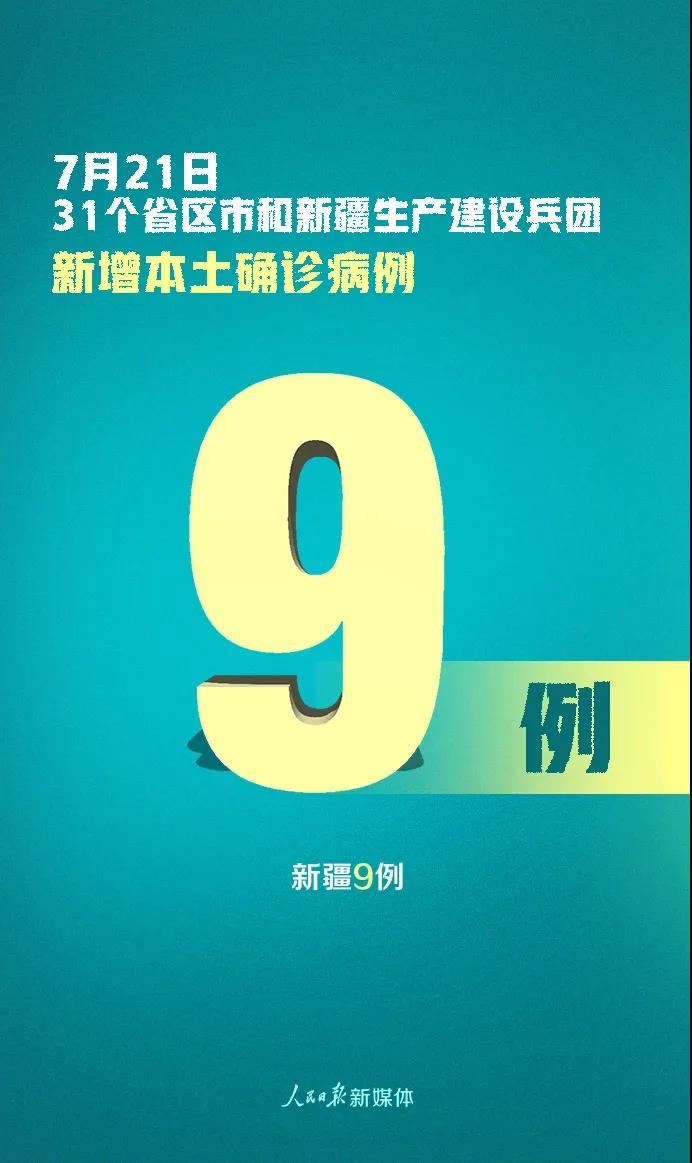 7月21日0—24時,31個?。ㄗ灾螀^(qū)、直轄市)和新疆生產(chǎn)建設(shè)兵團(tuán)報(bào)告新增確診病例14例,其中境外輸入病例5例(上海2例,廣東2例,云南1例),本土病例9例(均在新疆);無新增死亡病例;無新增疑似病例。
